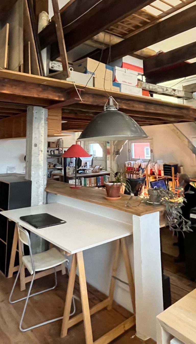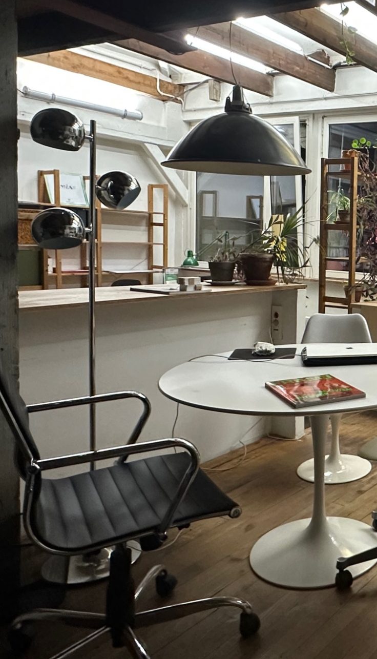 Studio Premier c'est aussi un lieu. Notre agence se niche dans les hauteurs du XXe arrondissement de Paris. Nous aimons nous y retrouver entre chaque déplacement et chaque visite de chantier. C'est un lieu qui vous est ouvert, où vous pouvez échanger avec nous, crayons en main, sur les plans et sur les échantillons de matériaux de votre projet.
